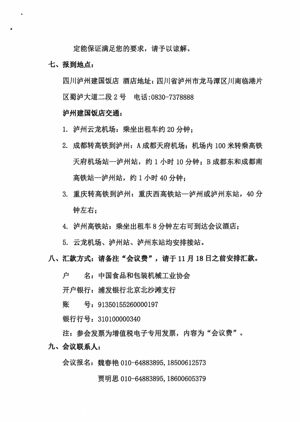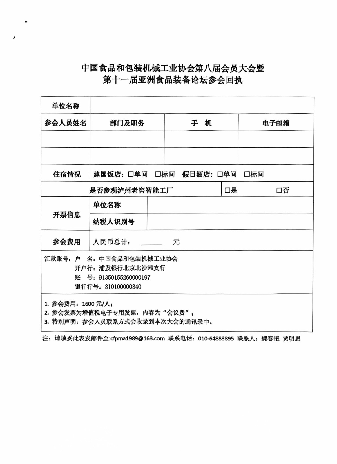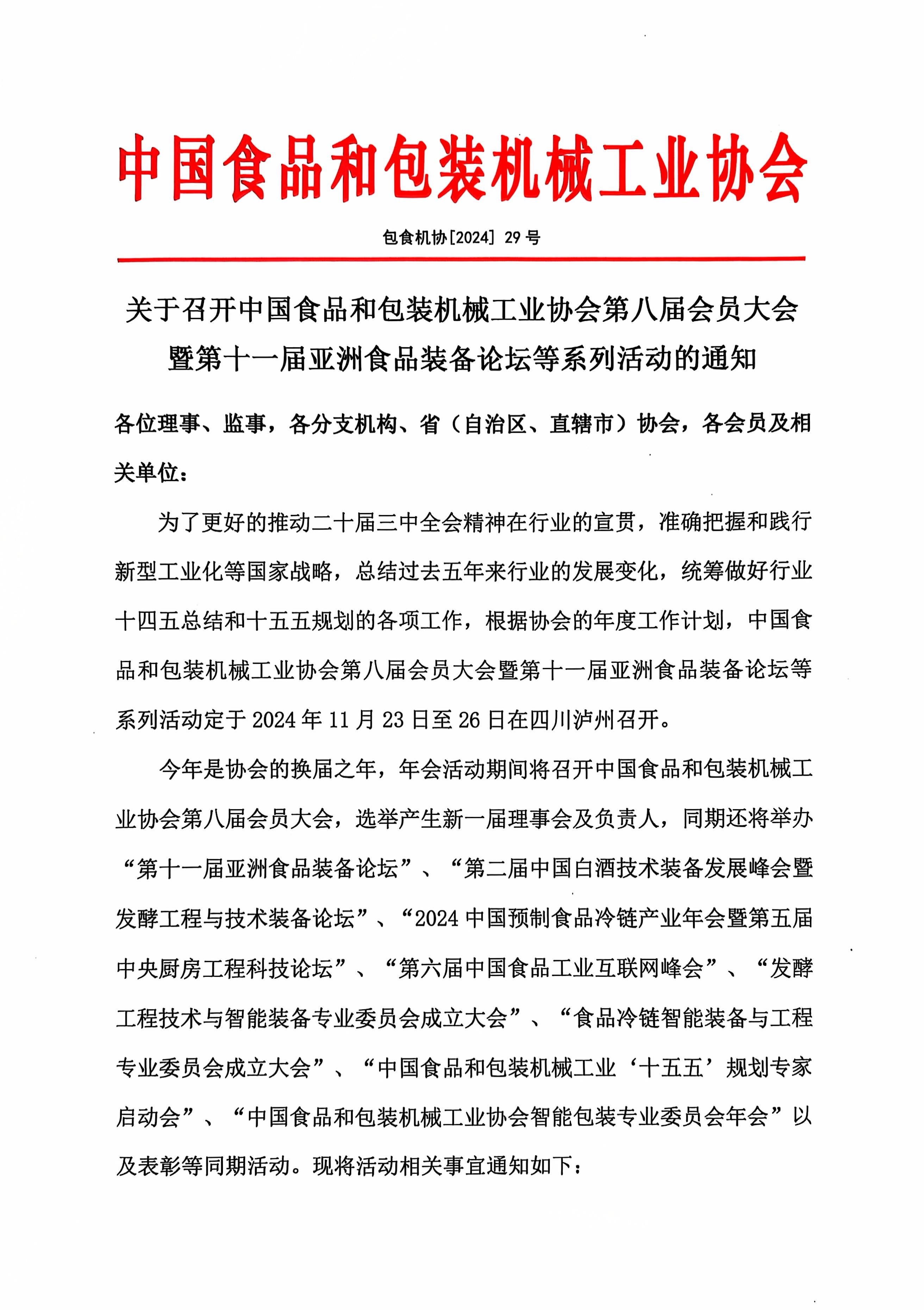 關(guān)于召開中國食品和包裝機(jī)械工業(yè)協(xié)會(huì)第八屆會(huì)員大會(huì)暨第十一屆亞洲食品裝備論壇等系列活動(dòng)的通知